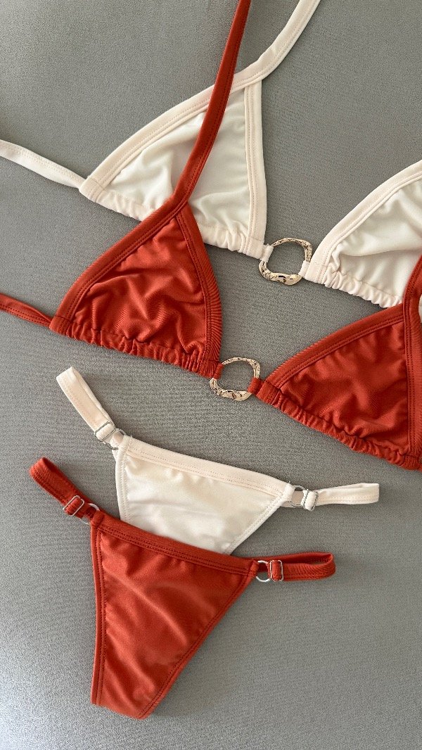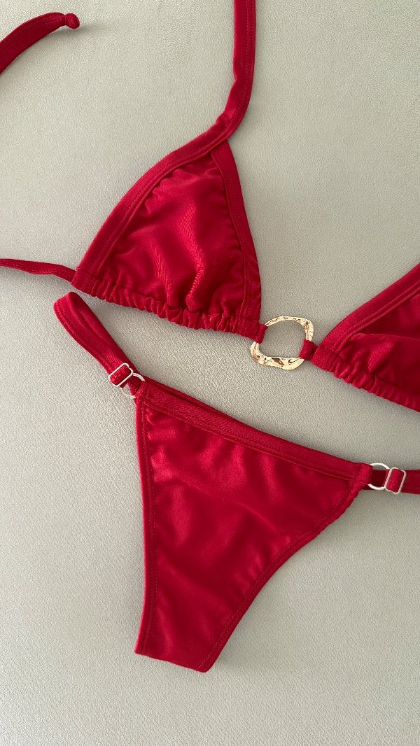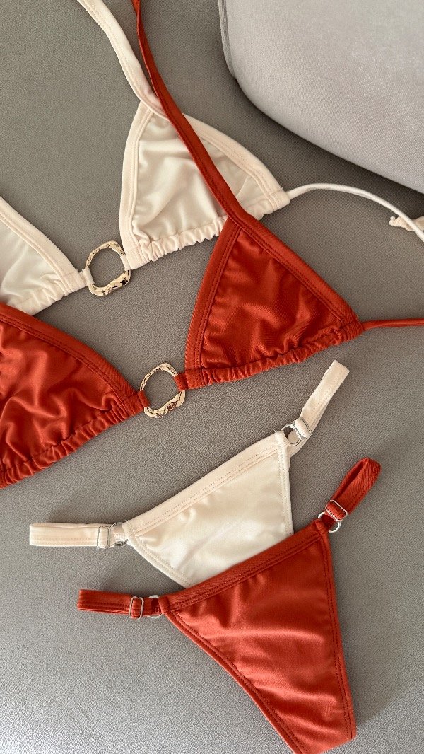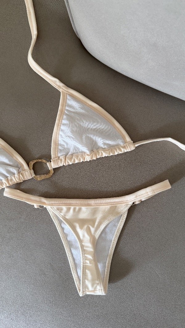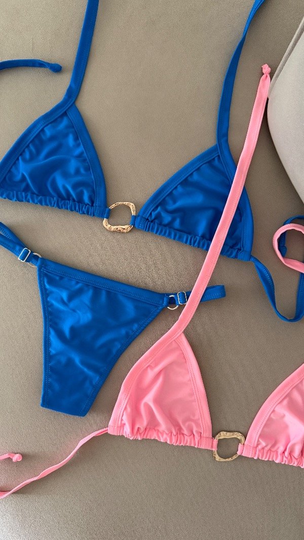 Bikini triangulo movible, forrada, con avio y tiras para atar. Bombi less regulable