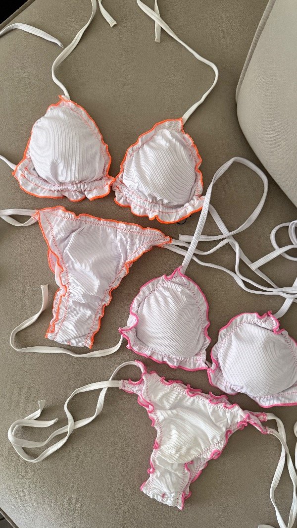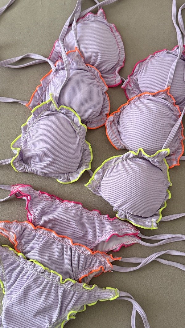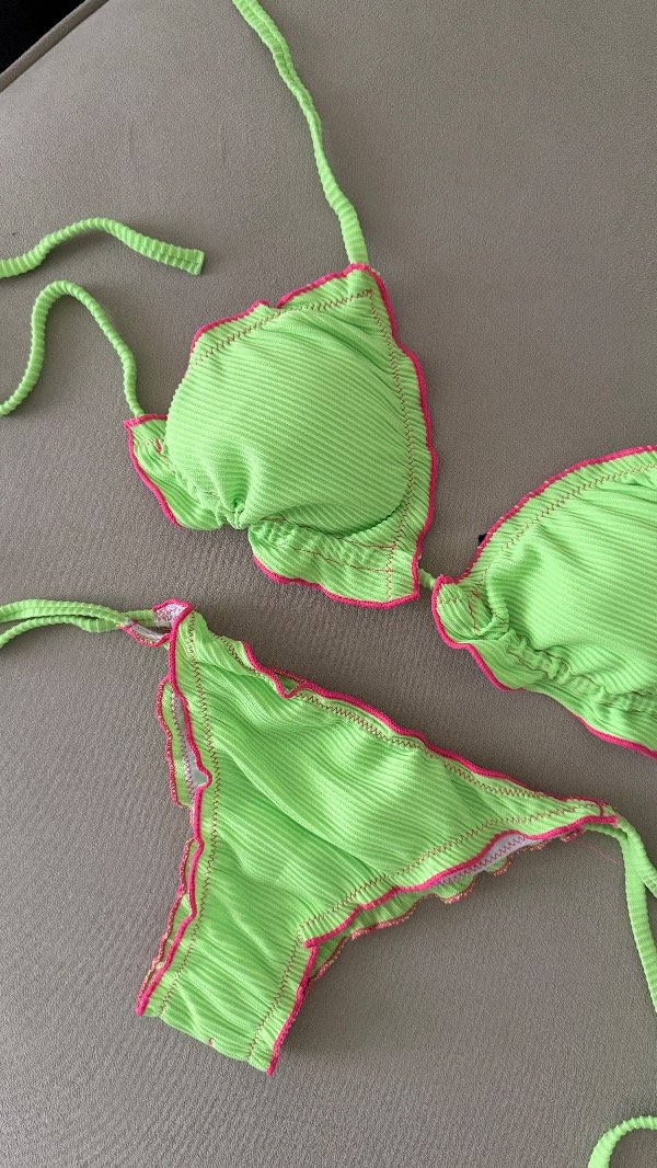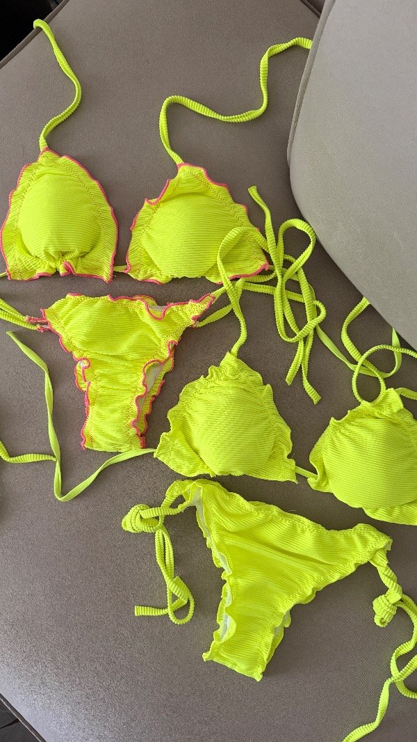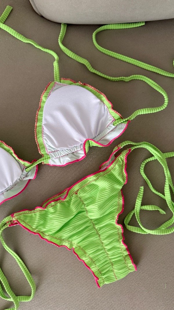 Bikini importada premium. Triangulito movible, tazas desmontables, tiras para atar en cuello y espalda. Bombi semiless con tiras para atar