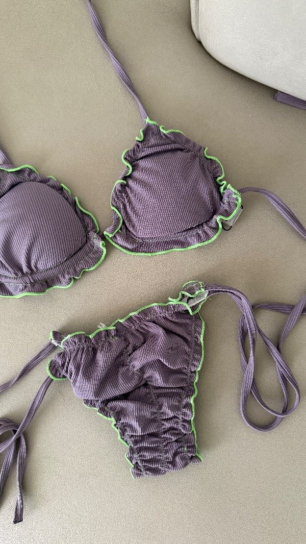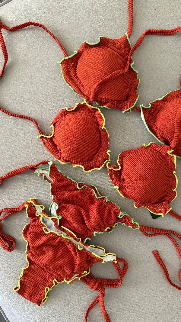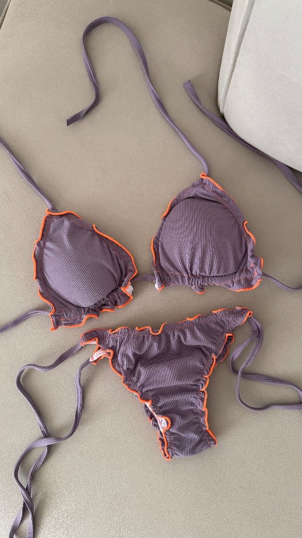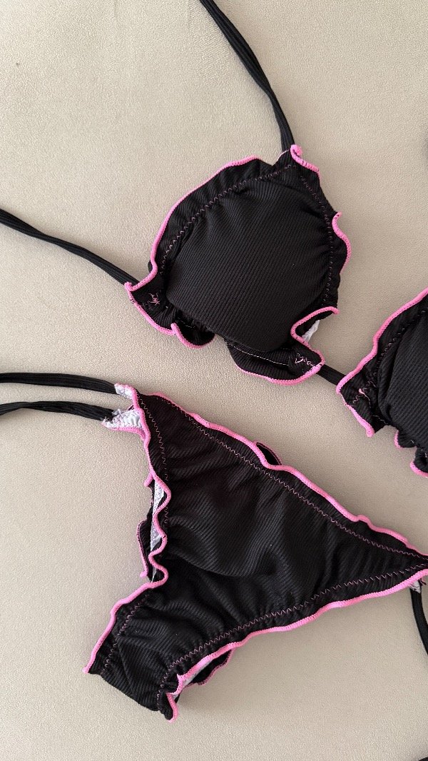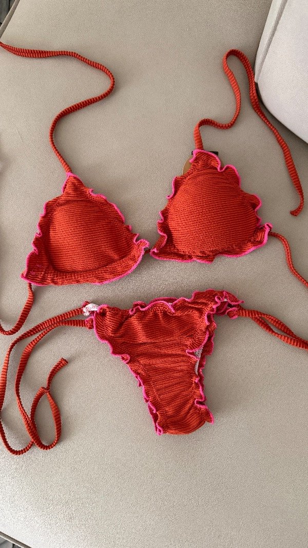 Bikini importada premium. Triangulito movible, tazas desmontables, tiras para atar en cuello y espalda. Bombi semiless con tiras para atar