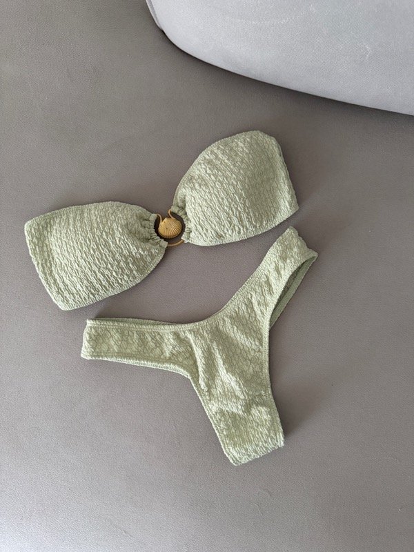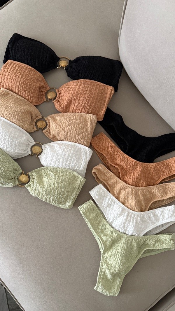 Corpiño bando, con tazas, tiras en espalda para atar. Less clásica