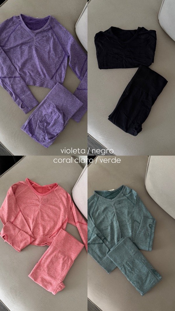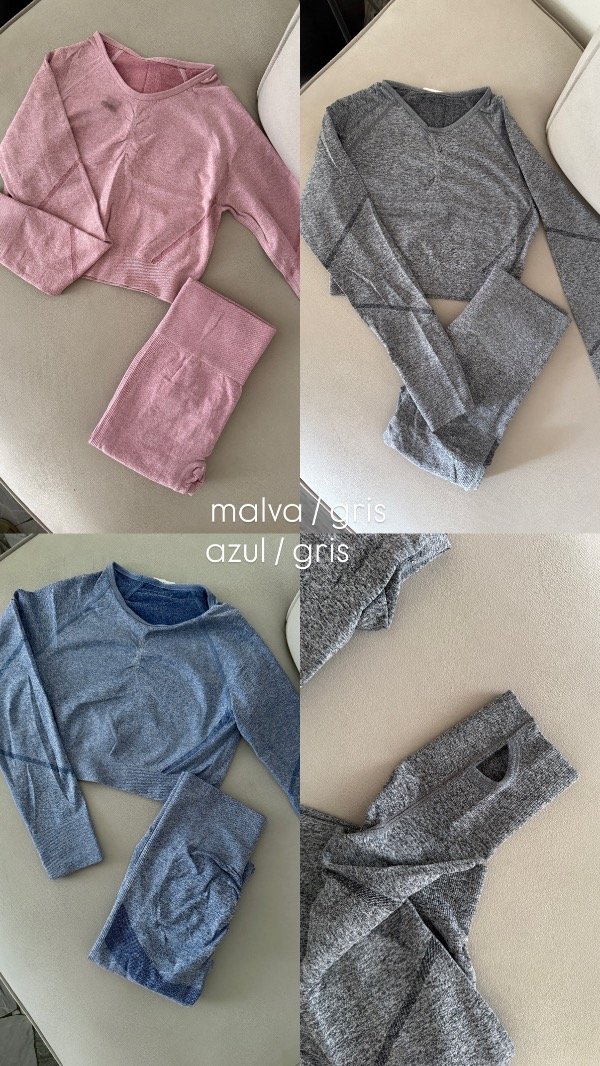 Set importado. Calza larga con frunce push up + top mangas largas con abertura para dedo. Efecto jaspeado