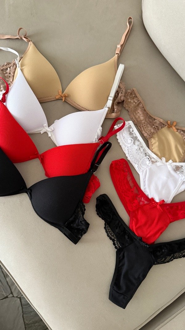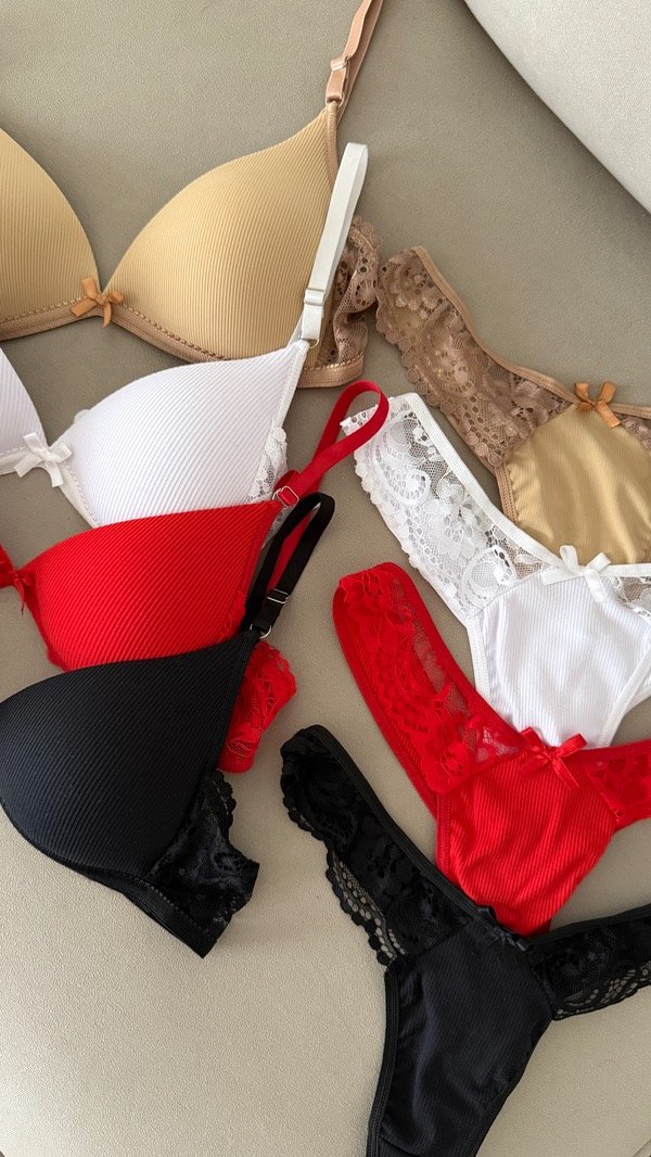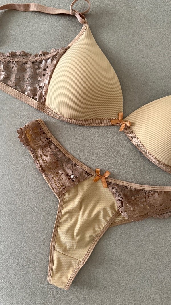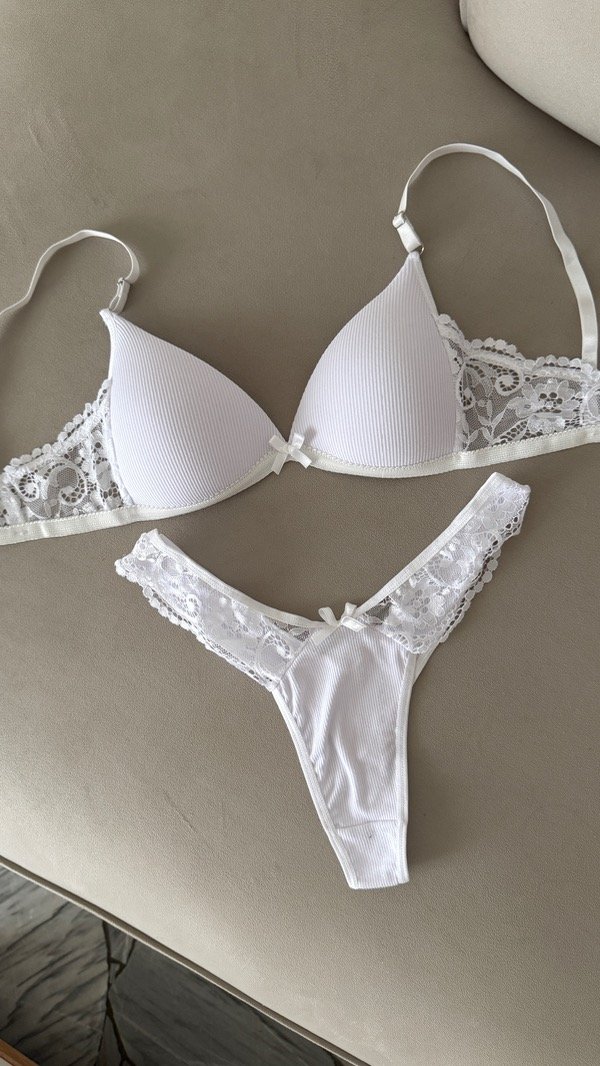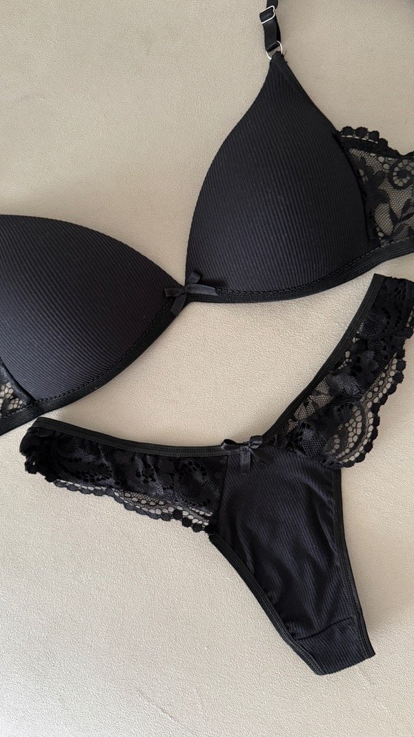 Conjunto triángulito taza soft morley de algodón. Less entera con detalle en encaje. Talle único abarca 36 a 40