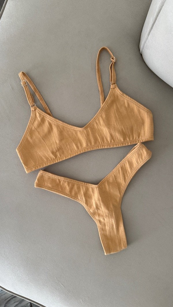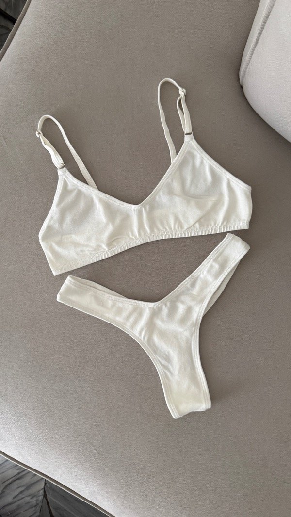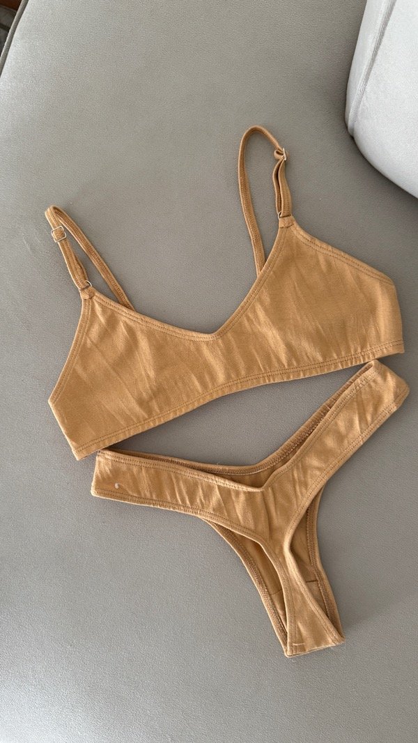 Conjunto de algodón. Top breteles regulables + less en V. Bombi talle único abarca 36 a 40/42