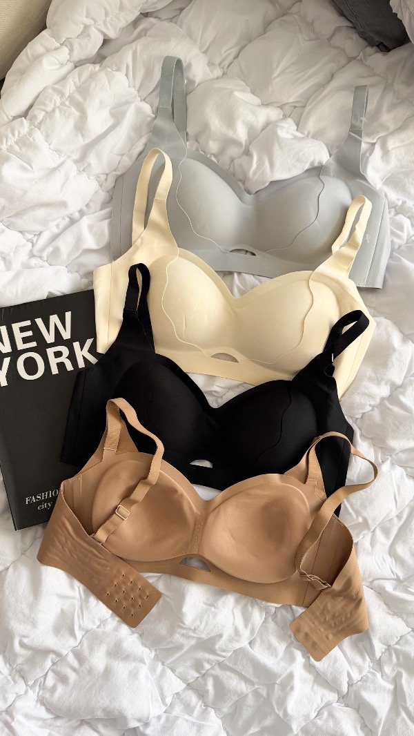 Corpiño segunda piel con detalle de abertura en el centro. Breteles regulables y tazas fijas