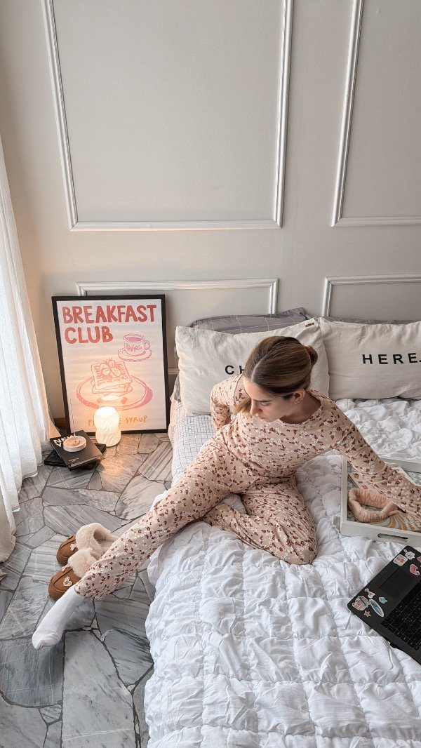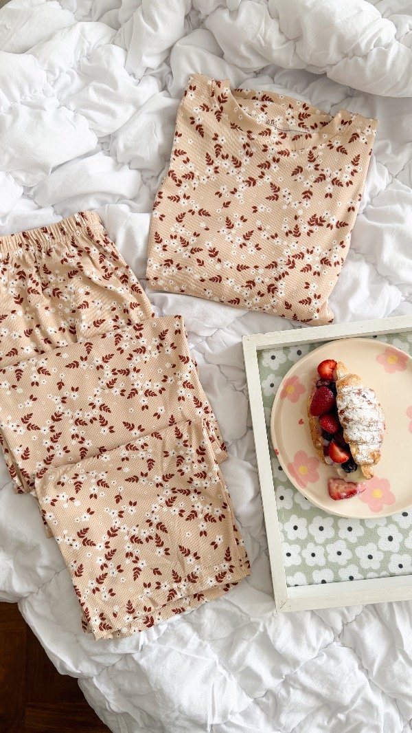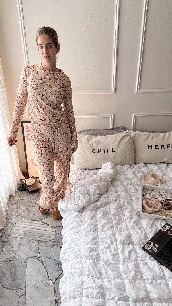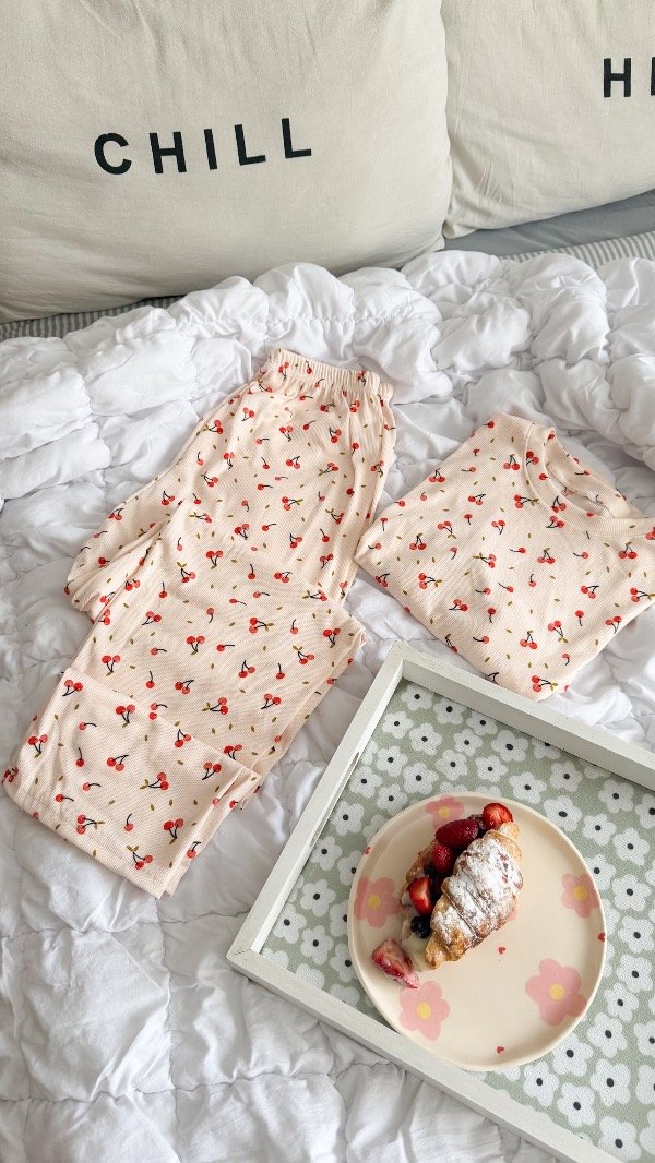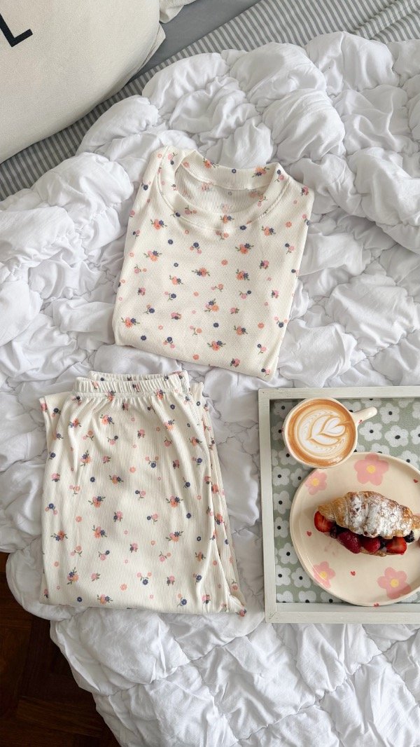 Pijama morley de algodón. Reme mangas largas + pant largo tiro alto