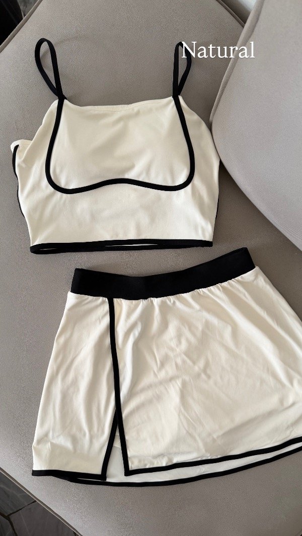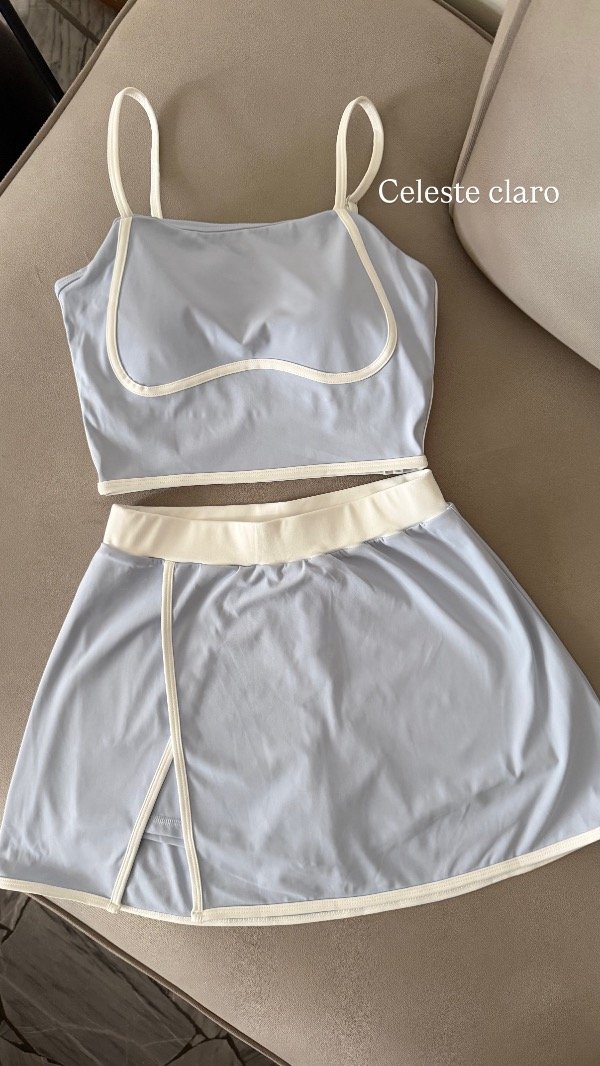 Set premium. Top con breteles regulables y tazas desmontables. Skort con bolsillo