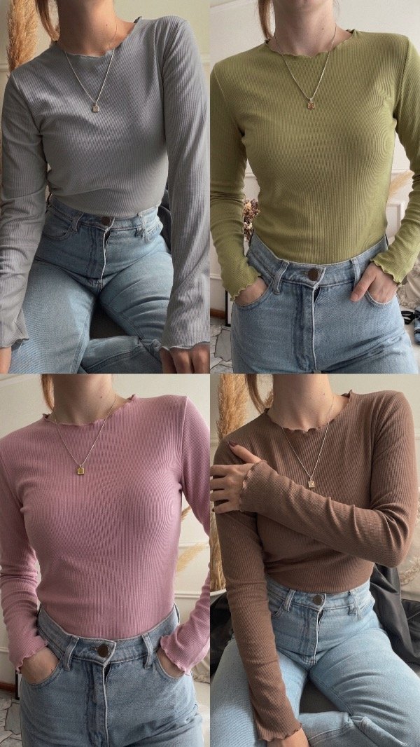 Camiseta térmica acanalada con bordes ondulados