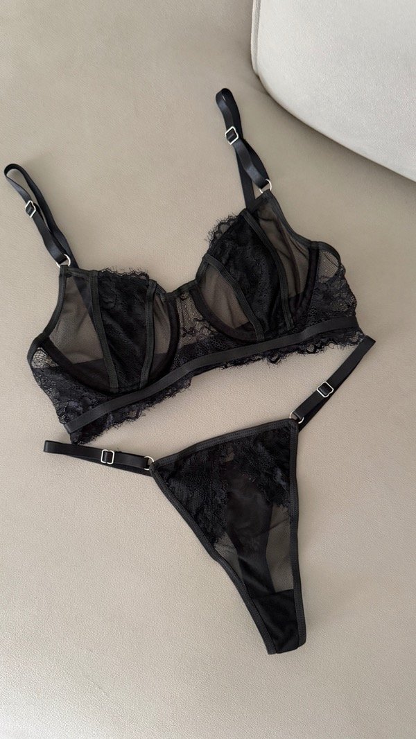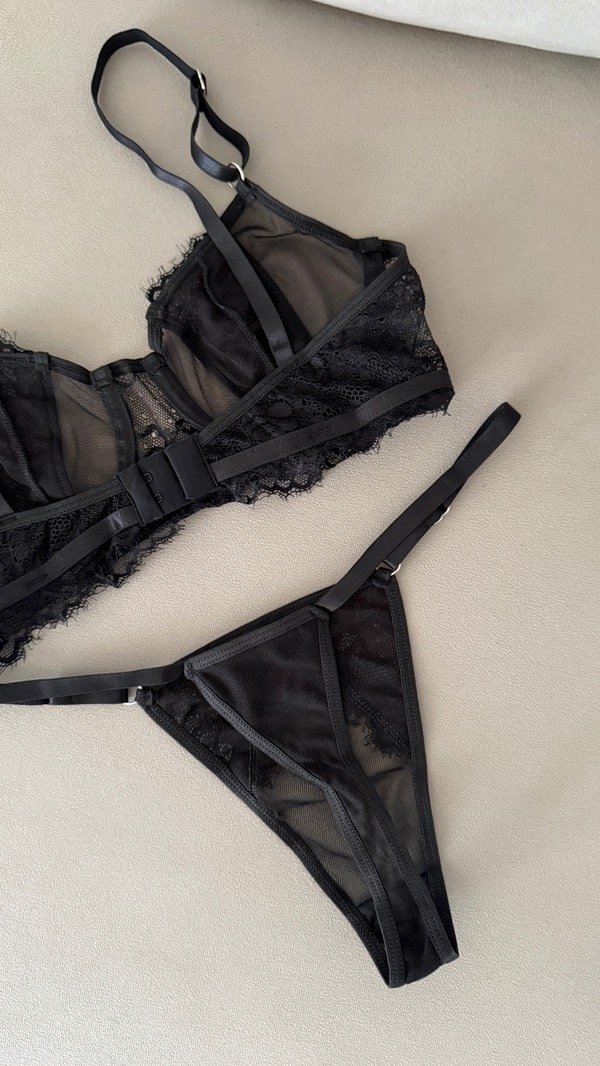 Conjunto de Microtul y encaje. Corpiño con aro, breteles regulables y bombi less regulable abarca 36 a 46/48