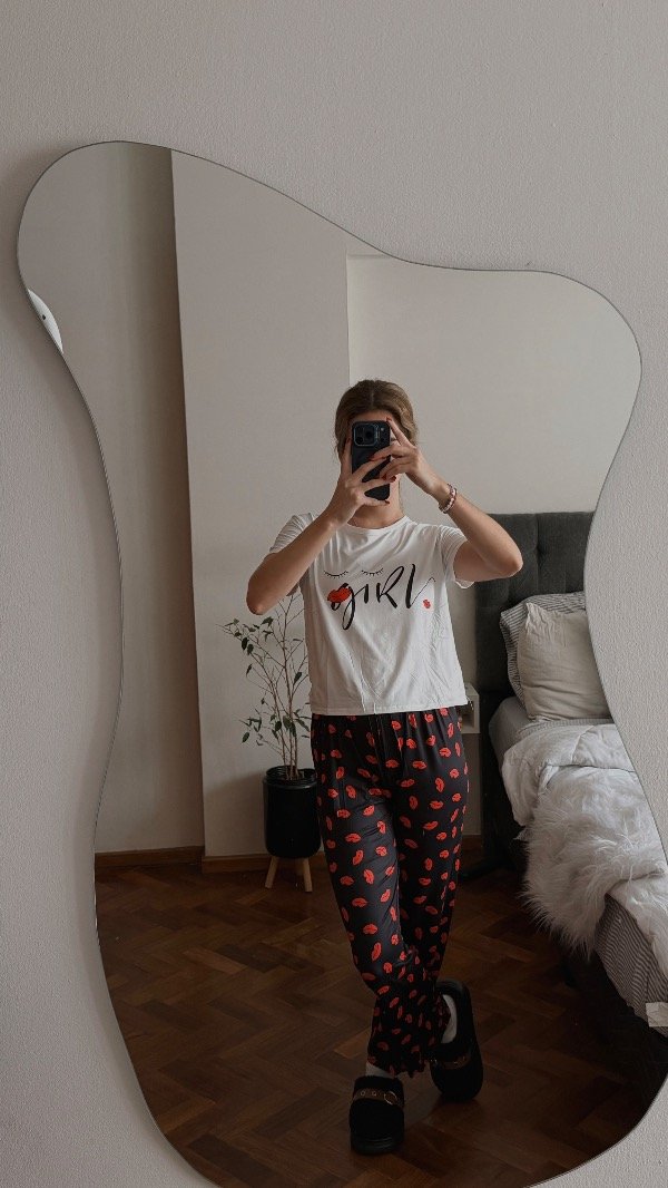 Pijama importado 2 piezas. Reme + pantalón largo. Tela elastizada