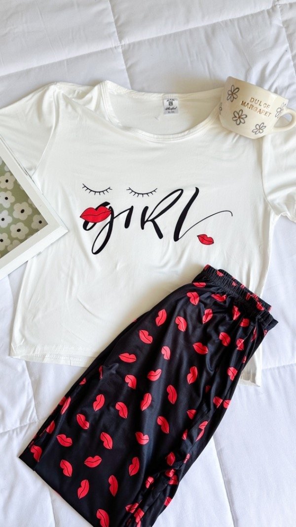 Pijama importado 2 piezas. Reme + pantalón largo. Tela elastizada