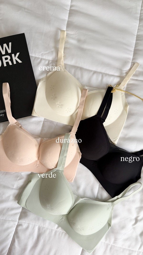 Corpi importado segunda piel segunda piel. Tazas fijas (no desmontables), breteles regulables y broche en espalda con 3 niveles de ajuste. Detalle central de microtul. Talles 85 al 100